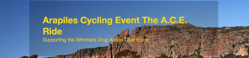 The A.C.E. Ride is supporting the Wimmera Drug Action Taskforce, and an opportunity to get out and about, enjoy our local scenery, improve your physical fitness and set yourself a challenge. The largely flat Wimmera landscape is ideal for getting around on a bike. For the rider who regularly attends such events and enjoys ‘clocking up the Ks’ with friends, for whom 100 Kilometres is a pleasant days ride and who enjoys riding at a reasonable clip with the right gear to do it – to the rider who would prefer to travel along a bike path, a shorter distance, but still with a goal in view.